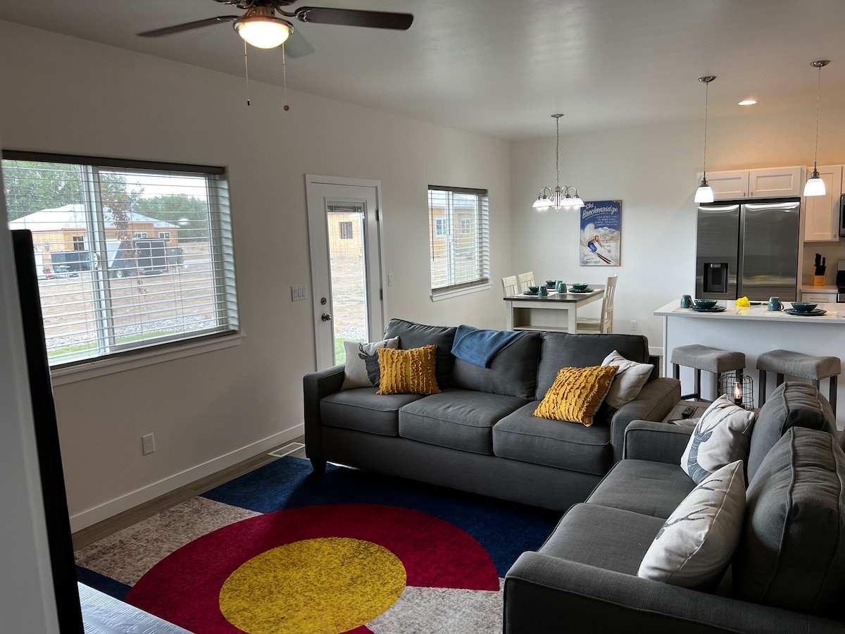Escape to our modern 3-bedroom Montrose home, your perfect base for exploring Black Canyon National Park! Comfortably sleeping 6, this stylish retreat features a fully equipped kitchen, a dedicated workspace with fast WiFi, and a private fenced yard. Pet-friendly and family-ready with a Pack & Play and highchair. Just blocks from Main Street's shops and dining. An ideal blend of adventure and comfort! Click the ❤️ in the right corner to add M and E Homes to your wishlist