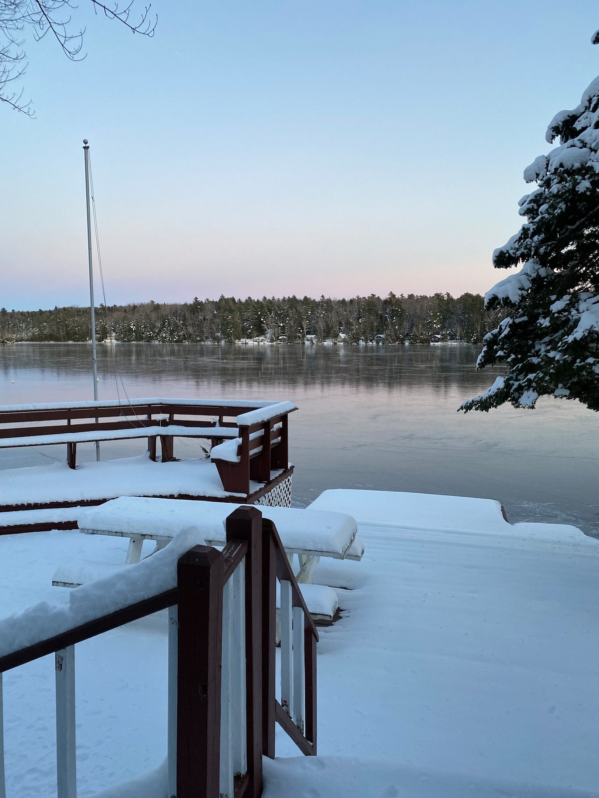 Уютные 2 кровати, 1 выдвижной диван-кровать, 2 спальни, 2 ванные комнаты, ванная комната с видом на воду/горы на пруду Хобба. Расслабьтесь на причале, приготовьте на гриле с террасы, каноэ (1)/каяки (2)/поплавайте днем и расслабьтесь с парящими услугами на смарт-телевизоре ночью. 5 минут езды до Camden Snow Bowl для катания на лыжах/сноуборде зимой. Катание на коньках на пруду. Снимайте лодку во время вашего пребывания. 13 минут езды до центра Камдена для отличных ресторанов и круиза на закате на паруснике. Рядом с пешеходными тропами!