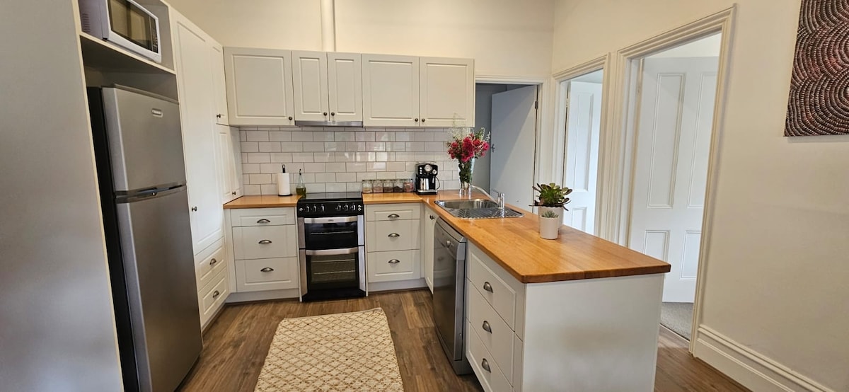 Эта автономная студия в деревне Джа-Джа-Вуррунг расположена под нашим домом. Это полностью отдельное и личное пространство с кондиционером, с двойным остеклением и со своей собственной внеуличной парковкой и доступом. Жилье находится в нескольких минутах ходьбы от центра города, комплекса The Mill Complex, отеля The Bridge и ботанического сада и всего в 7 минутах ходьбы вверх по холму от железнодорожного вокзала. Насладитесь потрясающим видом на восток из гостиной, спальни и вашего собственного балкона через город до Линганука.