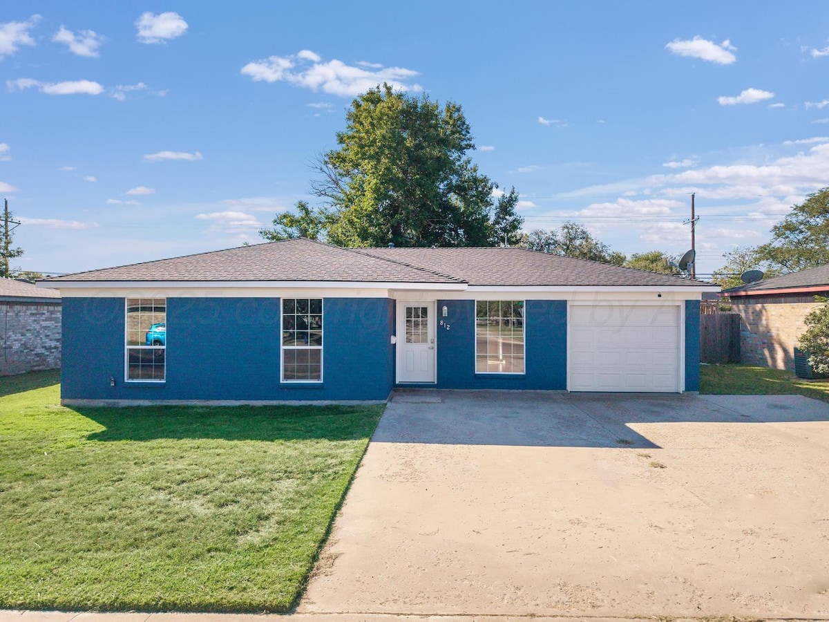 Добро пожаловать в ваш безмятежный ретрит в Дюмасе, штат Техас! Дом «Ding Dong Daddy». Эта очаровательная квартира с 3 спальнями и 1 ванной идеально сочетает комфорт и удобство, идеально подходит для семей, путешественников или профессионалов, ищущих расслабляющего отдыха.