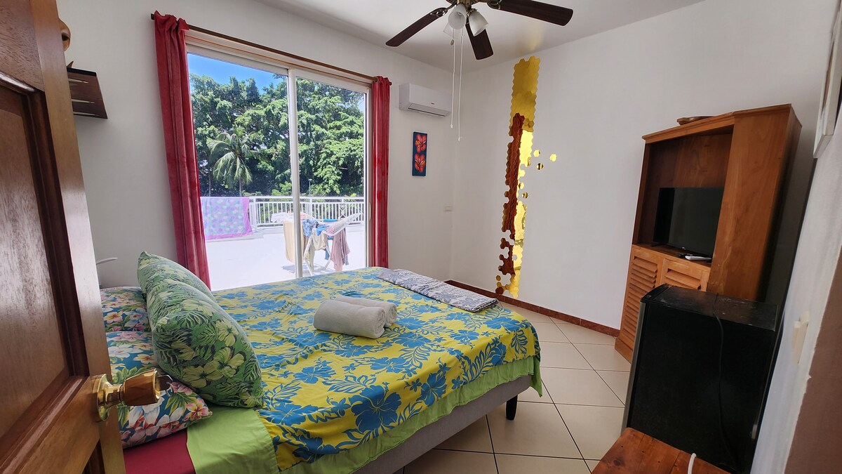 Проживание в зеленой обстановке, доступ в лагуну 3 минуты пешком, возможность поставить каяки. Вид на Таити. 15 минут от парома, водопадов . 3 спальни, одна ванная комната. 70 евро/ночь за двухместную спальню и 50 евро/ночь за одноместную спальню. Я принимаю только одну семью Дом площадью 140 кв. м с крытой террасой, гостиной, столом и лесистой территорией. Интерьер с отдельным пространством, общая комната с общей кухней, просто и чисто. Я сопровожу вас на каяке для наблюдения за дельфинами и китами.
