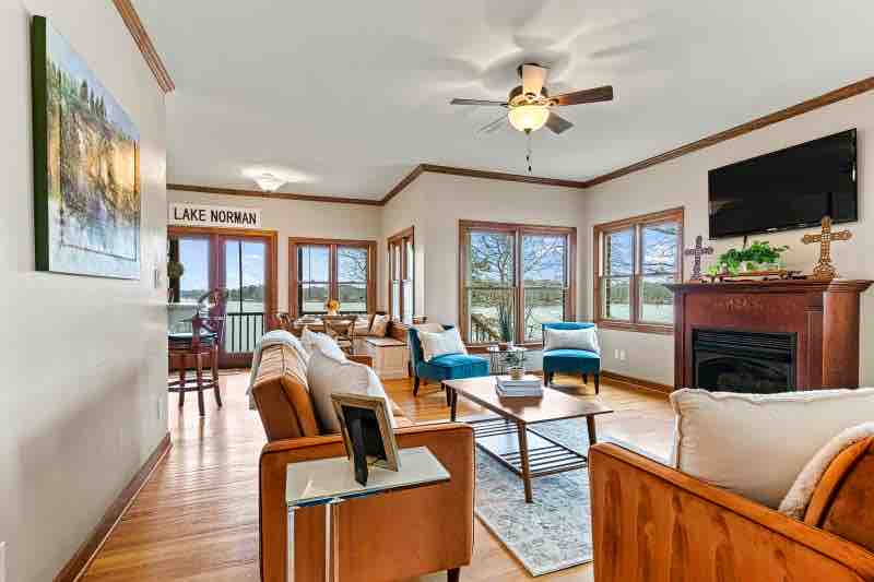 Современный шикарный дом на берегу озера в тихой бухте на озере Норман с великолепным видом. Насладитесь роскошным отдыхом с друзьями и семьей в нашем уютном доме на ранчо, расположенном на глубине более 120 футов прямо на воде, спрятанной в захватывающей частной бухте. Предназначен для размещения до 10 человек в стиле. Вы выбираете, это гидромассажная ванна, обеденная зона на открытом воздухе, которая вмещает 10 человек на палубе с видом на озеро, каяки, гребные доски или пожарную яму дляморей на пляже?