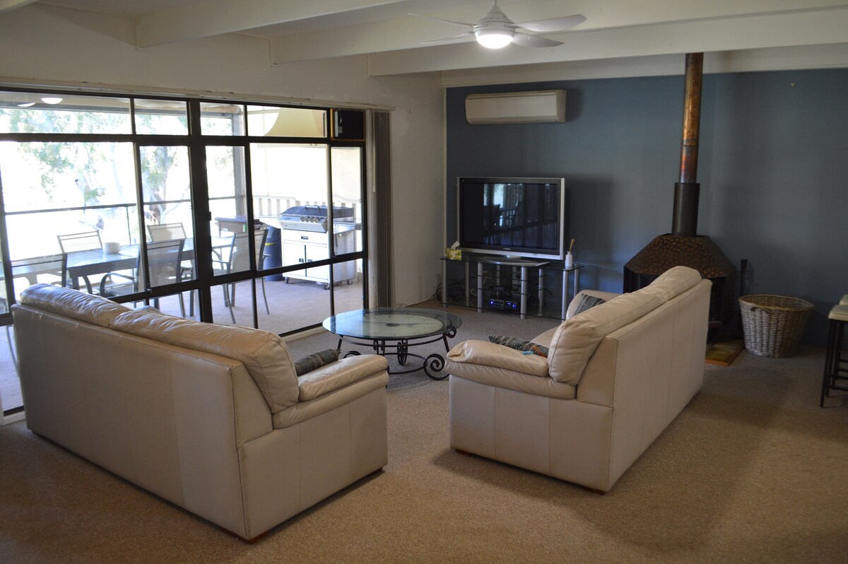 Расположенный в живописной лагуне Walker Flat Lagoon, в этом очаровательном маленьком доме есть все для идеального отдыха для пар, семей или небольших групп. Отдых на террасе с барбекю, с видом на лагуну и скалы. Большой частный двор с пышным газоном идеально подходит для детских и собак. Костровище идеально подходит для поджаривания зефира и наблюдения за звездами в заповеднике темного неба. Отдохните от главной реки для более спокойного отдыха, всего 2 минуты до лодочной стоянки, общественного берега реки и киоска.