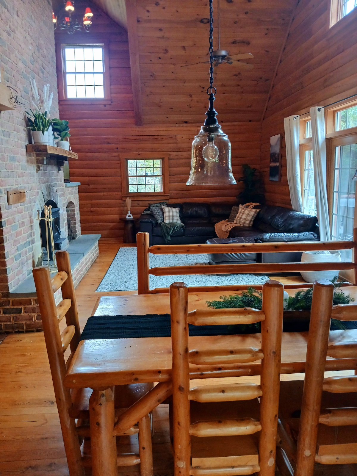 Уютный гостевой люкс, пристроенный к главному дому в бревенчатом коттедже. Полностью оборудованная кухня, обеденная зона, дровяная печь, удобная кровать размера Queen size, гардероб, игры, 100 фильмов. Душевая кабина и встроенное сиденье. Прачечная с дверью на палубу, бистро, камин. В сводчатой гостиной есть выдвижное любовное сиденье на одну спальню, телевизор [ROKU, You Tube TV, HULU, Netflix, Amazon, Disney], Blu-Ray плеер и Google Nest Mini. Наслаждайтесь блюдами на завтрак, такими как свежие яйца, сок, молоко, хлеб, кофе, чай и домашняя пицца.