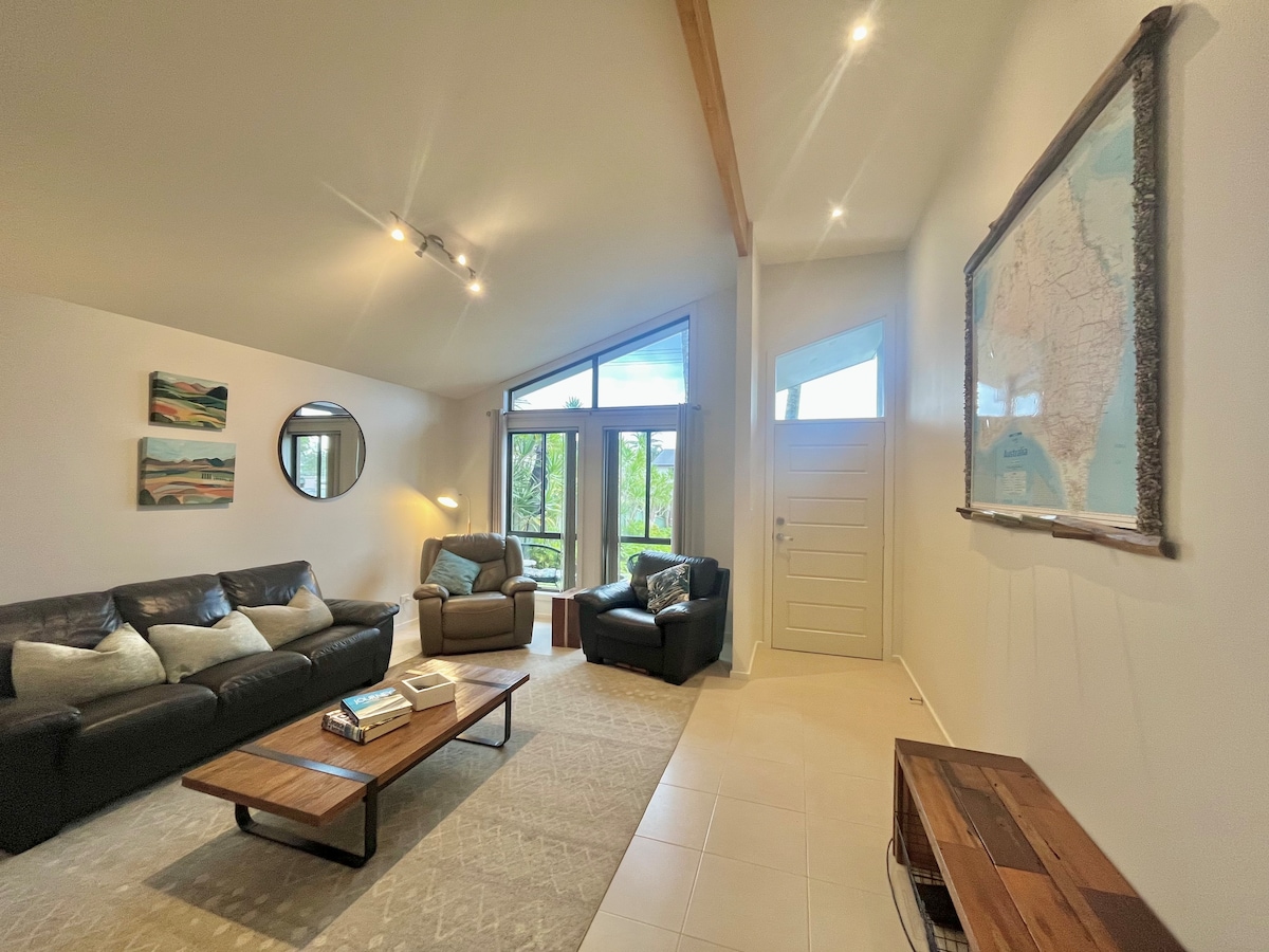 Privacy abounds in this tranquil and relaxing 3 bedroom home boasting views to a private lush tropical garden Just a 2 minute walk across the road to the reserve on the shores of Lake Macquarie, or go for walks along the public reserve. 13 min drive to local beaches 400 metres from the local Shopping village Arrival & departure at noon but can be extended until 5pm departure if a weekend booking! Perfect for small family or 2 couples getaway.