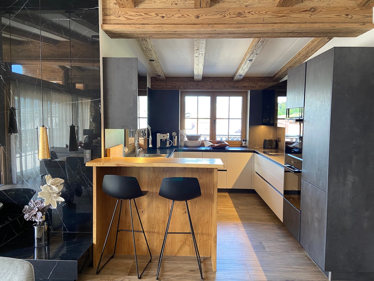 Квартира площадью 150 м² идеально подходит для семей, которые хотят отдохнуть в горах и на природе вместе с бабушками и дедушками, внуками или друзьями. Группы друзей до 10 человек также будут довольны этой просторной, современной квартирой. Завтрак можно забронировать по соседству. Пекари, магазины и крытый бассейн с сауной и железнодорожным вокзалом находятся всего в нескольких минутах ходьбы. Расслабьтесь у камина или в большом патио на балконе. - с электронными зарядными станциями;