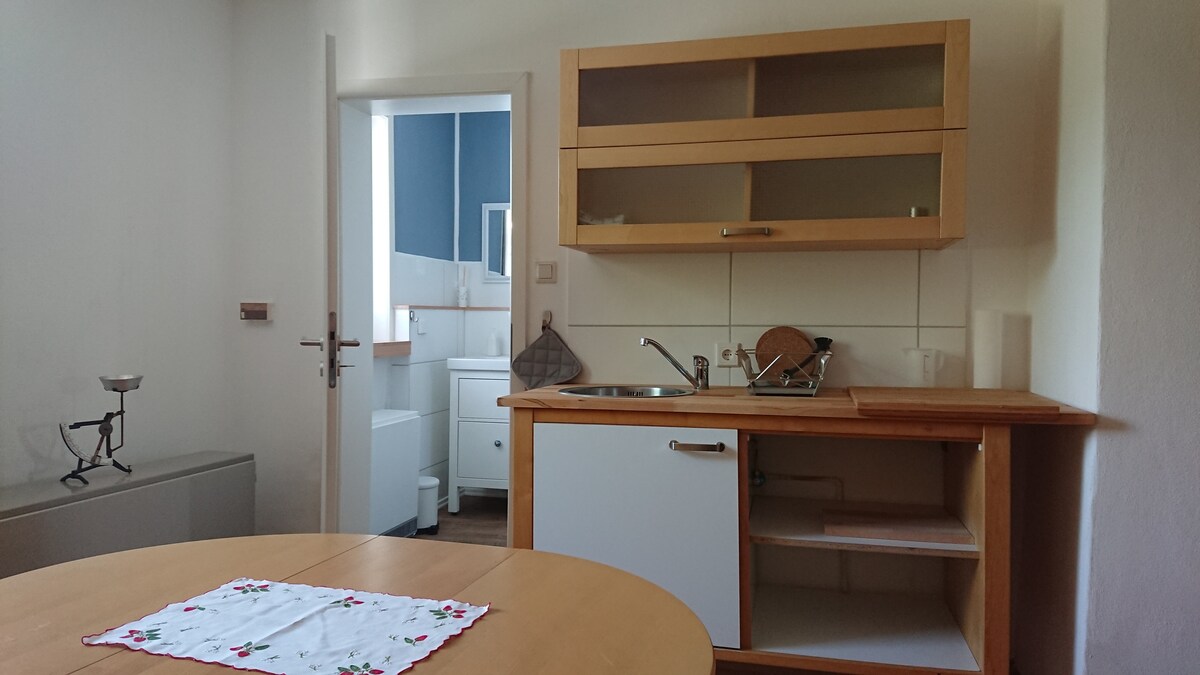 Жилье для особенно экологичного проживания и отдыха, также популярное среди геймеров/киберспортсменов: оптоволоконный Интернет со скоростью загрузки 105 Мбит/с и скоростью отправки 45 Мбит/с, пинг 10 мс, LAN-разъемы в каждой комнате. Вы арендуете верхний этаж в доме, которому около 100 лет и который был полностью отремонтирован после длительного простоя. Приезжайте на поезде и используйте привезенные или доступные велосипеды (хорошее транспортное сообщение также на машине). Отопление нейтральных гранул CO₂, электричество от Greenpeace Energy.