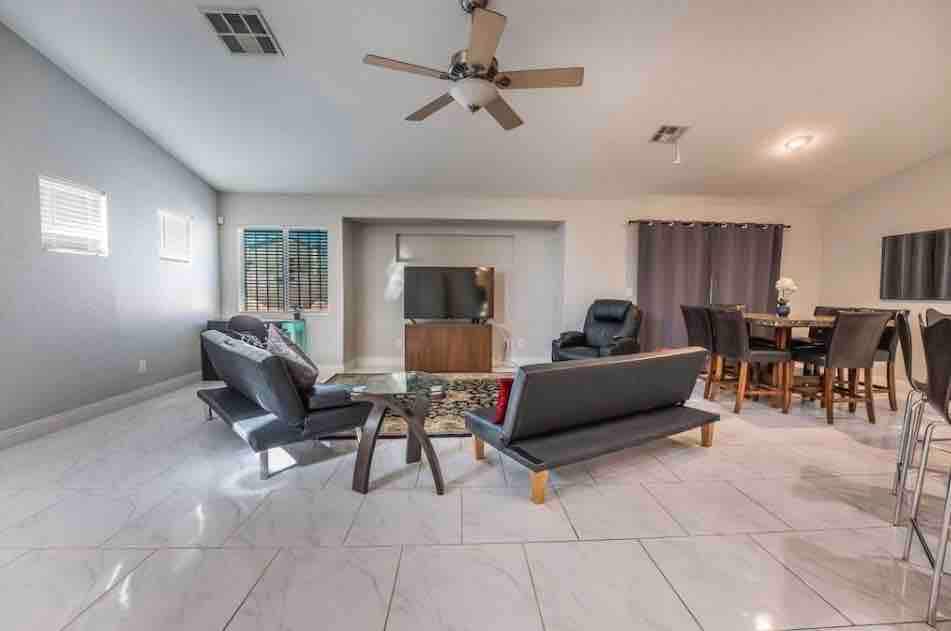 Добро пожаловать в наш гостеприимный отдых на Airbnb, где можно остановиться всего в 16 минутах ходьбы от ослепительной Лас-Вегас-Стрип. Наш дом с 2 просторными спальнями, освежающим бассейном и современными удобствами предлагает идеальное сочетание комфорта, стиля и удобства. Наш Airbnb стратегически расположен, обеспечивая легкий доступ к различным удобствам и услугам поблизости. В непосредственной близости вы найдете хорошо оборудованный тренажерный зал, рынок Whole Foods Market и знаменитый In-N-Out.