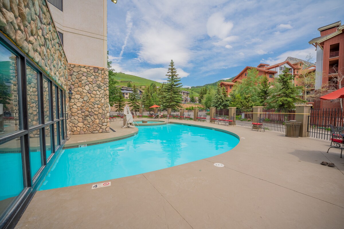 Расслабьтесь и катайтесь на лыжах всей семьей на этом тихом первом этаже, где можно остановиться с домашними животными, подходит для детей, на склоне, вмещает 4 человека с 2 КРОВАТЯМИ РАЗМЕРА KING SIZE (1 кровать размера King size+ King Murphy). Вы будете в нескольких шагах от склонов и бесплатного трансфера до центра Крестед-Бьютт. Рядом с крытым/открытым бассейном и спа, фитнес-центром, грилем/баром и сувенирным магазином. Наслаждайтесь катанием на лыжах/сноуборде, походами, велосипедами и парком приключений у вас под рукой. Идеальное место, чтобы насладиться горами или Crested Butte-A Идеальный горнолыжный городок Колорадо!