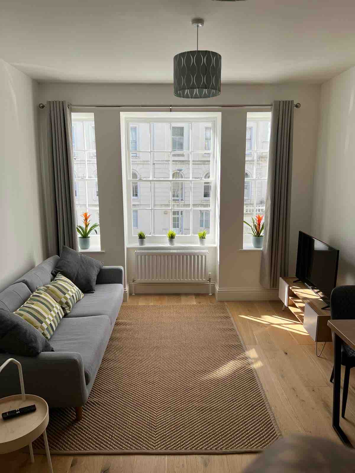 Fully modernised 2 bedroomed entire flat on the top floor of a Victorian house; accessed by 5 flights of stairs. Whilst we do accept pets, it is not suitable for young children under 12 years. Centrally located, the flat is situated in the historic part of town, only moments from the waterfront & Hoe (where legend states Drake played bowls before fighting the Armada); the Barbican, with restaurants, shops, cafes and bars, is a 5 minute walk; Theatre Royal and Plymouth Pavilions are 7 mins walk.