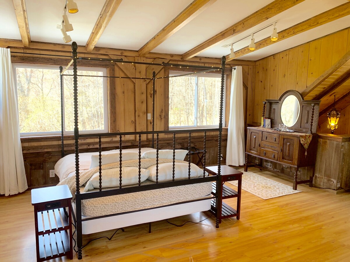 Добро пожаловать в нашу недавно отремонтированную квартиру-студию, расположенную среди деревьев на безмятежных холмах Западного Виндзора, штат Вермонт. Поднятое на втором этаже, это отдельное сооружение предлагает спокойный отдых с захватывающим видом на гору Аскатни и наш собственный пруд. Погрузитесь в комфорт этой продуманно оформленной квартиры-студии, окруженной естественной красотой пейзажа Вермонта. Каждая деталь была продумана, чтобы обеспечить вам максимальный комфорт и удовольствие.
