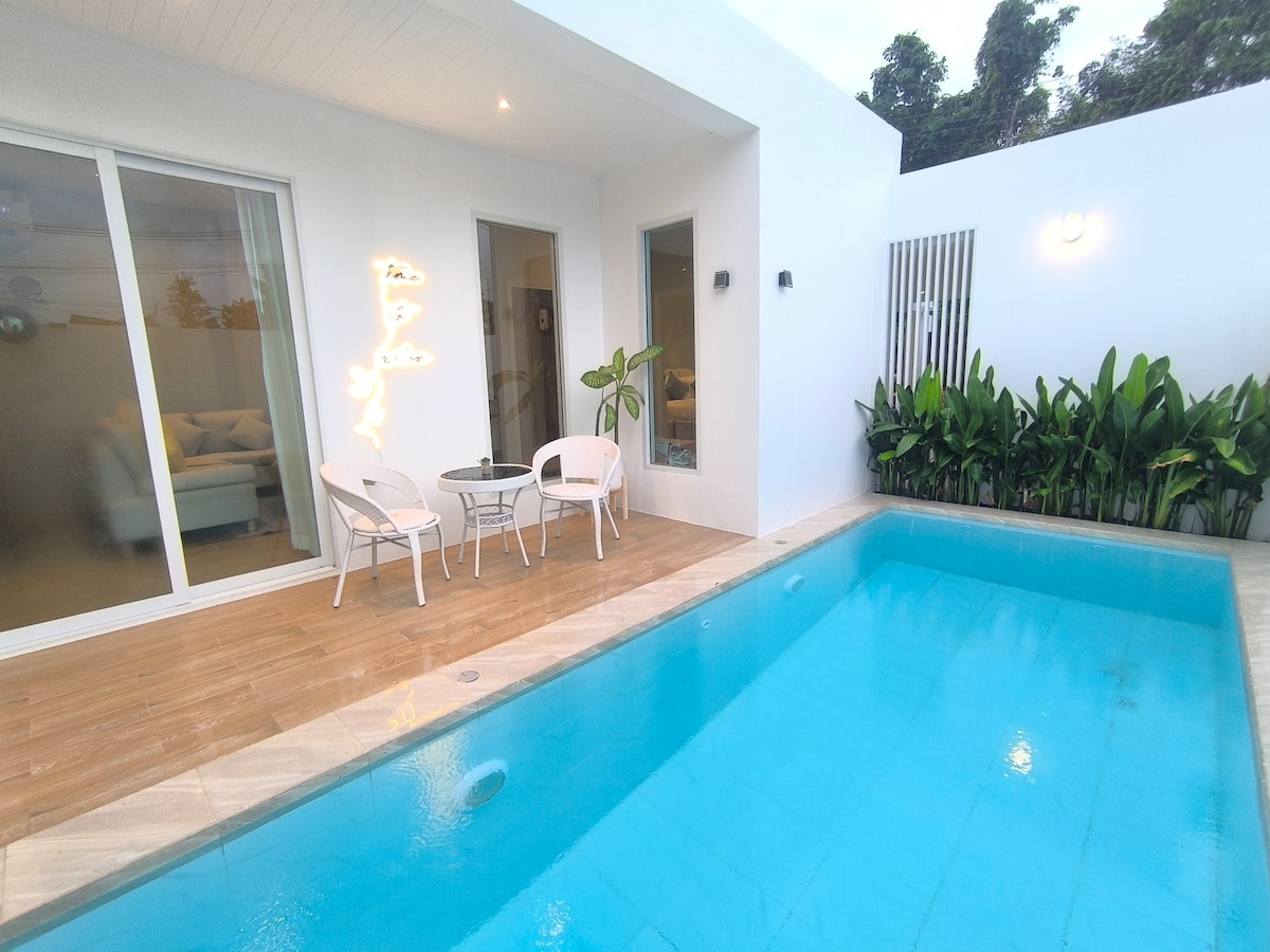 #Наша недавно отремонтированная вилла с частным бассейном расположена менее чем в 5 минутах езды от пляжа. Мы делаем всё возможное, чтобы сделать всё возможное для наших гостей. Вас угостят бесплатной бутылкой вина и нашим личным смотрителем на весь срок вашего пребывания. Интерьер дома был недавно перепланирован известным местным дизайнером и представляет собой красивое сочетание тайского и западного стилей, плавно объединяя их.