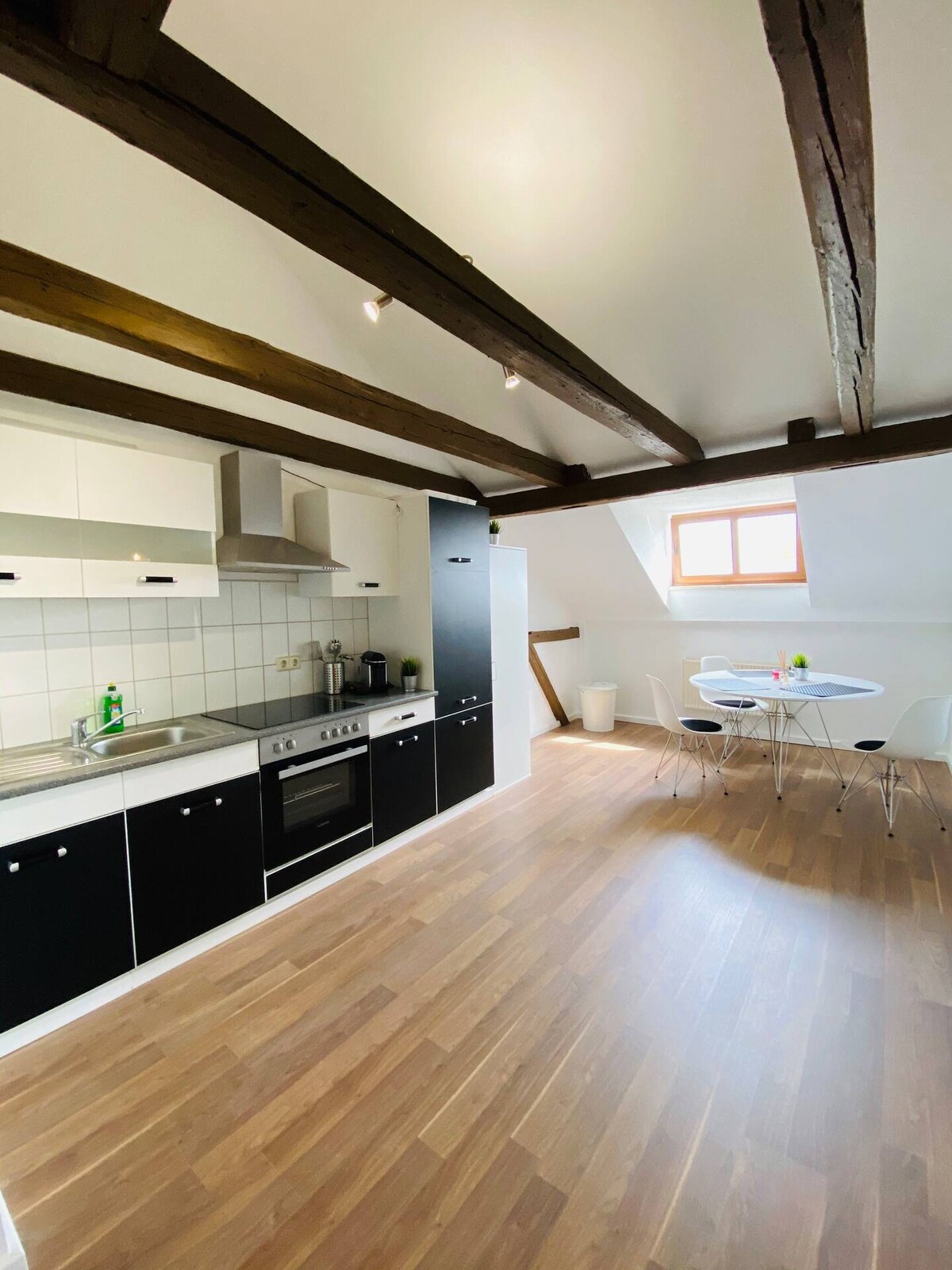 Почувствуйте себя как дома в этой уникальной, с любовью меблированной квартире на 2-м этаже. Много мебели ручной работы и приглашает вас комфортно задержаться. У вашего порога есть бесплатная парковка. До центра города, а также до парков/ супермаркетов можно дойти за несколько минут пешком. У вас будет кровать ручной работы 1,80 x 2,00. Ванная комната с душем и ванной. Открытая кухня приглашает вас готовить. Имеется балкон.