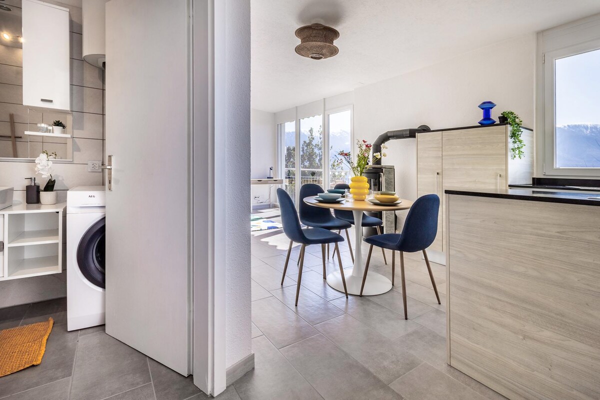 *НОВИЧОК НА AIRBNB* Новый современный кондоминиум (построен в 2020 году) Идеальный отдых в Локарно! Эта стильная квартира площадью 68 кв. м, расположенная всего в 1 минуте от озера и Лидо, на 2-м этаже в Parco Lago предлагает все для спокойного отдыха. Большой балкон (22 м²) приглашает вас расслабиться и приготовить на гриле.