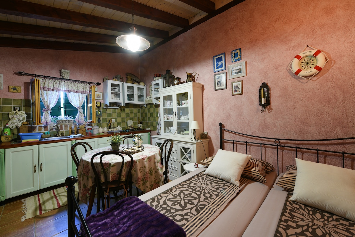 Наслаждайтесь нашим небольшим романтическим рыбацким коттеджем в туристическом заливе Магровица, природном парке Телашчица. Всего в 3 км от центра Сали. Дом не подключен к сети электричества и воды, но работает на солнечной энергии и предоставляет резервуары для дождевой воды. В душе есть горячая вода, а также есть душ на открытом воздухе с подогревом солнцем. На кухне нет горячей воды. Плита работает на газе. Насладитесь ужином на террасе вечером или проведите день на солнечной террасе в 2 метрах от моря.