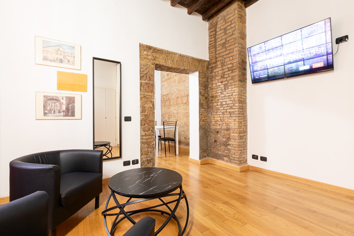 This delightful boutique apartment, located in an authentic 17th-century building, is the perfect retreat for couples and travelers seeking an intimate, authentic, and deeply Roman experience. The private panoramic terrace on the same level allows you to admire the city from above and feel connected to its truest soul, right in the heart of the historic center. A place designed to share emotions, relaxation, and small everyday rituals, while feeling completely at home.
