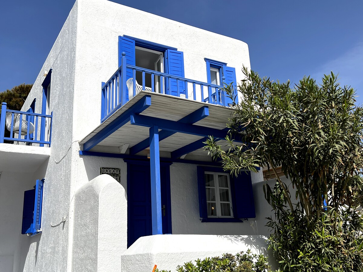 Completely new and stylish house. Renovation was finished at March 2023. House is located in private resort in front of the ocean. It has its own private beach(access only for the guests of the resort), swimming pool with sea water, tennis and basketball courts, restaurant and private car parking which you can all use FOR FREE. Our house is located just 10 minutes away from Mykonos centre. It has it's own balcony, air conditioning and fast wi-fi. Appartment located on a 2 floor.