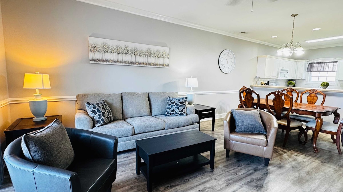 Расслабьтесь и наберитесь энергии в этом тихом прибрежном кондоминиуме с 2 спальнями в Мертл-Бич. Это современное жилье идеально расположено рядом с полями для гольфа и всего в нескольких минутах от пляжа, ресторанов и магазинов. Здесь вы найдете комфорт и спокойствие в тихом районе. К услугам гостей общий открытый бассейн, полностью оборудованная кухня, Smart TV, высокоскоростной Wi-Fi, собственный балкон, бесплатная парковка и самостоятельное прибытие. Идеально подходит для пар, небольших семей, зимовщиков или спокойного отдыха на побережье.