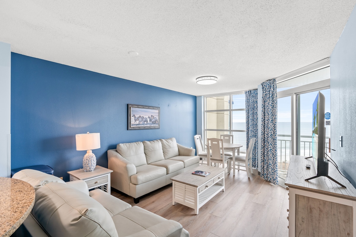 Relax with sweeping ocean views and an easygoing space designed to help you unwind. Enjoy your private balcony, simple comforts, and Seawatch’s pools just steps away. • 🌊 Oceanfront views that instantly slow you down • 🌅 Private balcony for morning coffee and quiet evenings • 🛏 Comfortable king bed with soft linens for restful, uninterrupted sleep • 🛋 Relaxed living space that feels easy, open, and uncluttered • 🍳 Fully equipped kitchen for simple meals and stress-free mornings • 📺 Smart