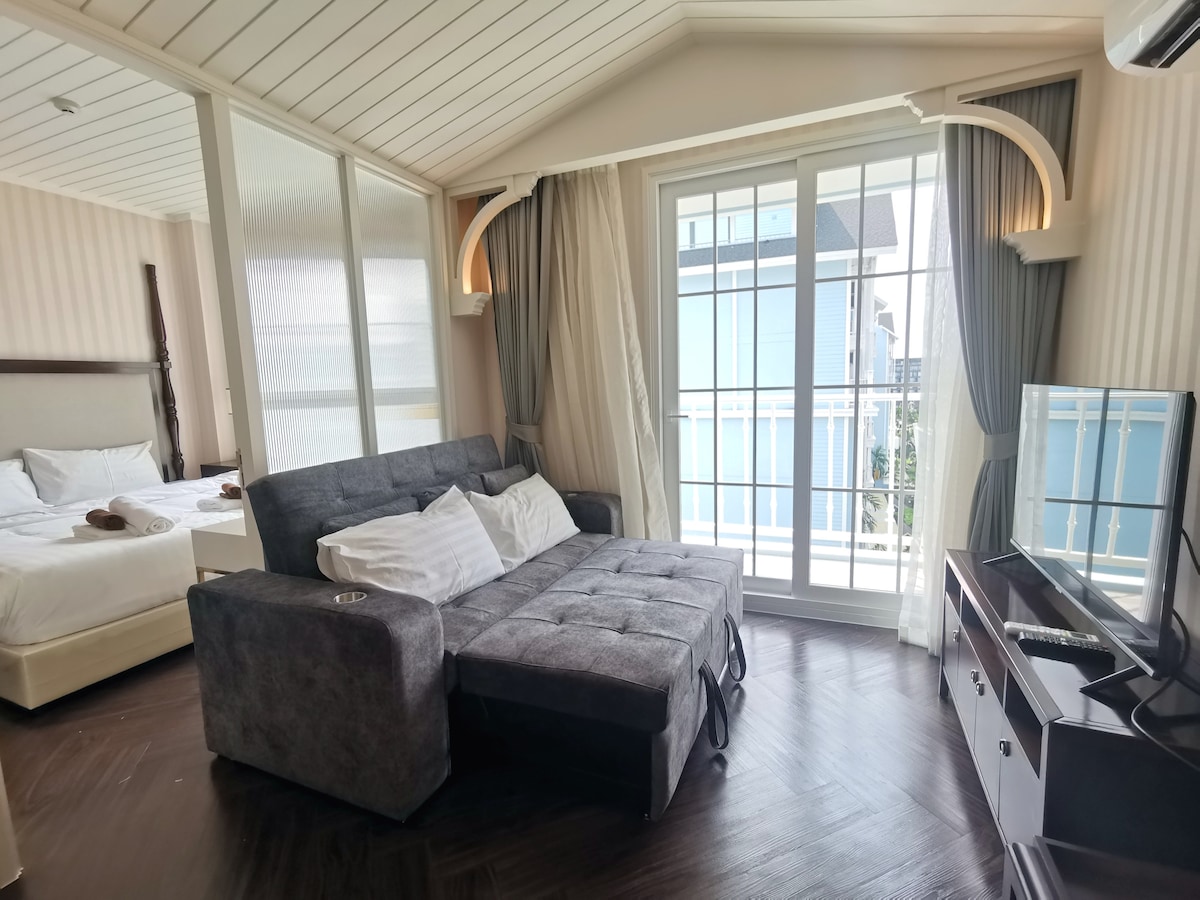 Veranda Residence Pattaya — это просторное жилье, идеально подходящее для пар или одиночных путешественников. Номер с современным дизайном, чистыми линиями, минималистичным декором и современными удобствами. В спальне есть удобная кровать размера King size и постельное белье премиум-класса, гарантирующее хороший сон. В гостиной есть уютный диван, телевизор с плоским экраном и спутниковыми каналами. Кроме того, вы также можете насладиться видом на море с балкона.