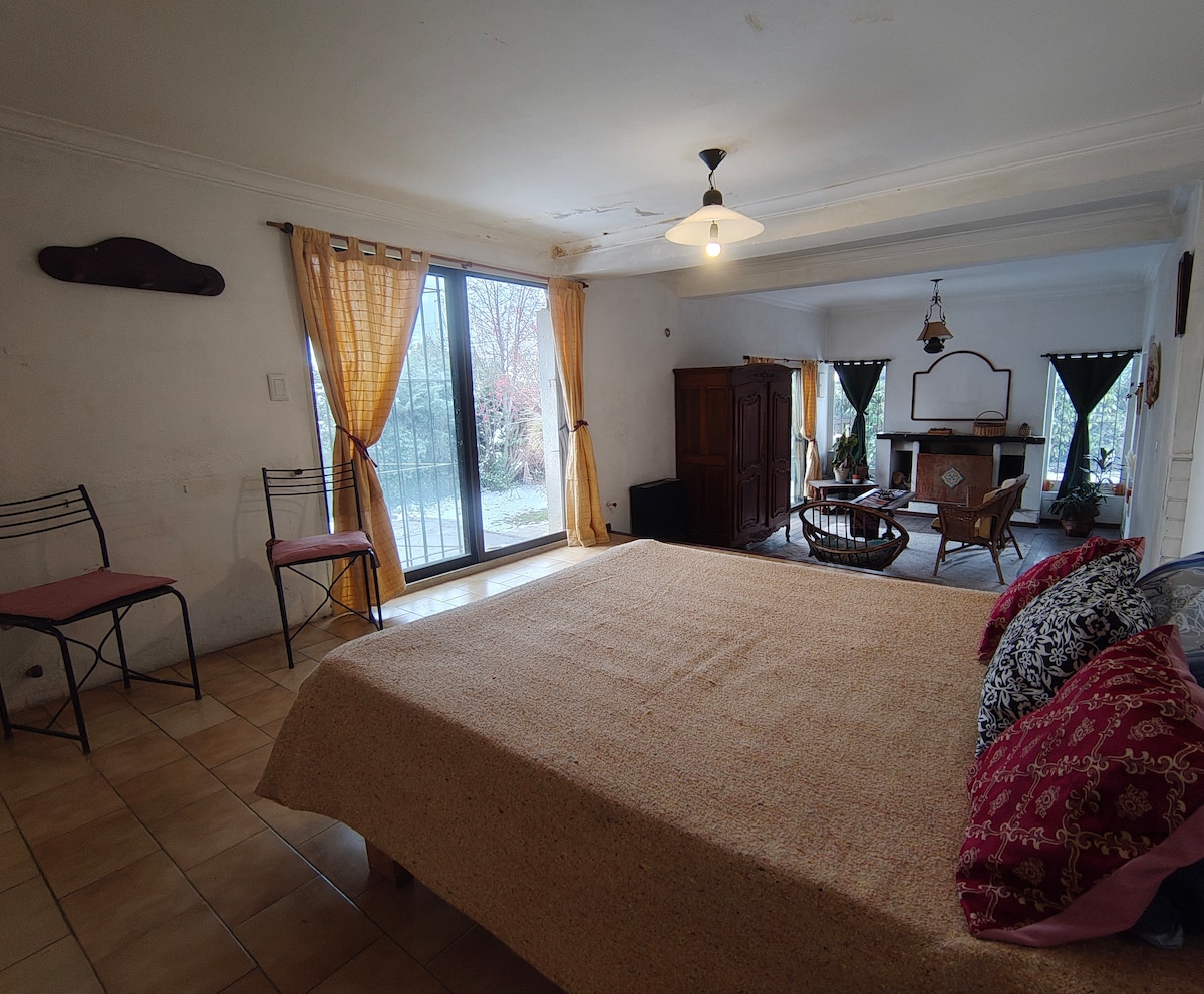 Это мой ателье – бухта художника. Это уютное и уединенное пространство, просторное с собственной ванной комнатой с душем. Вы будете в 5 км от центра города. Это тихий район, в 4 кварталах от автобусов, идущих в город. Вдали от шумного города, но с хорошим транспортным сообщением, поблизости есть супермаркеты, бары и легко добраться до многих туристических мест. Местоположение в гору, НЕ рекомендуется для людей с ограниченной мобильностью.