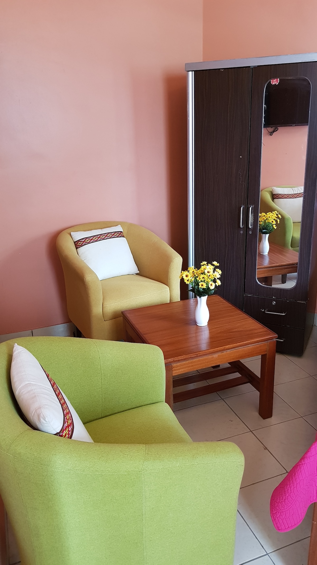 Студия WamAra HomeStay находится в тихом и безопасном районе, в часе езды от национального парка Найроби, недалеко от шоссе Thika Rd. К услугам гостей двуспальная кровать размера Queen size, Wi-Fi, телевизор со Smart TV и Netflix, хорошо оборудованная кухонная зона и собственная ванная комната. Из комнаты открывается вид на передний двор, и по запросу гости могут воспользоваться красивой гостиной. Наслаждайтесь спокойствием, прогулками или посетите отличный тренажерный зал/бассейн по соседству. Готовить/заказывать еду/поужинать в ресторане/закупаться в близлежащих торговых центрах. По прибытии всегда есть член команды, который встретит вас по прибытии.