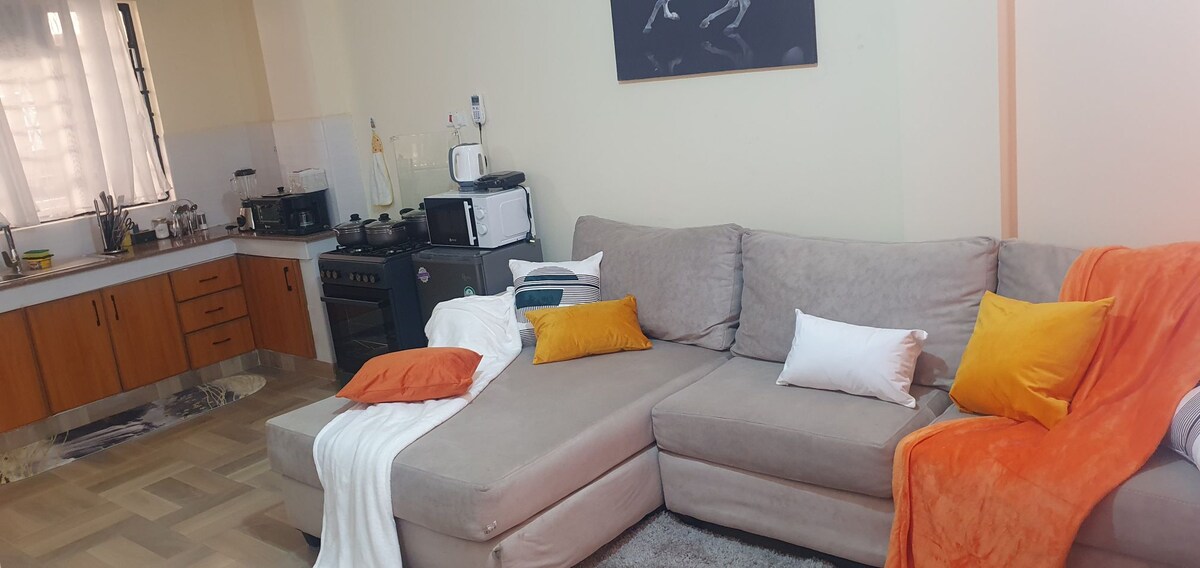 Откройте для себя идеальное сочетание городской элегантности и комфорта в этой изысканной квартире, расположенной всего в 5 км от центра города Накуру и в 7 км от национального парка Накуру. В квартире есть высокоскоростной Интернет, телевизор Smart TV и большая суперэластичная кровать из пены для комфортного сна. К услугам гостей полностью оборудованная кухня с микроволновой печью, холодильником и газовой плитой, а также стиральной машиной с фронтальной загрузкой, которая может выдерживать нагрузку 7 кг.
