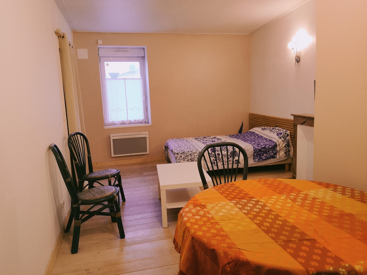 Vous êtes les bienvenus dans ce charmant studio doté d'une pièce à vivre confortable équipée d'un lit double et de nombreux rangements pratiques. La cuisine est équipée de tout le nécessaire pour cuisiner vos repas. La salle d'eau dispose d'une grande douche accessible pour les personnes à mobilité réduite. Vous bénéficiez aussi d'un coin bureau pour télétravailler dans le logement. Nous espérons que vous vous sentirez chez vous et que vous apprécierez votre séjour dans notre logement.