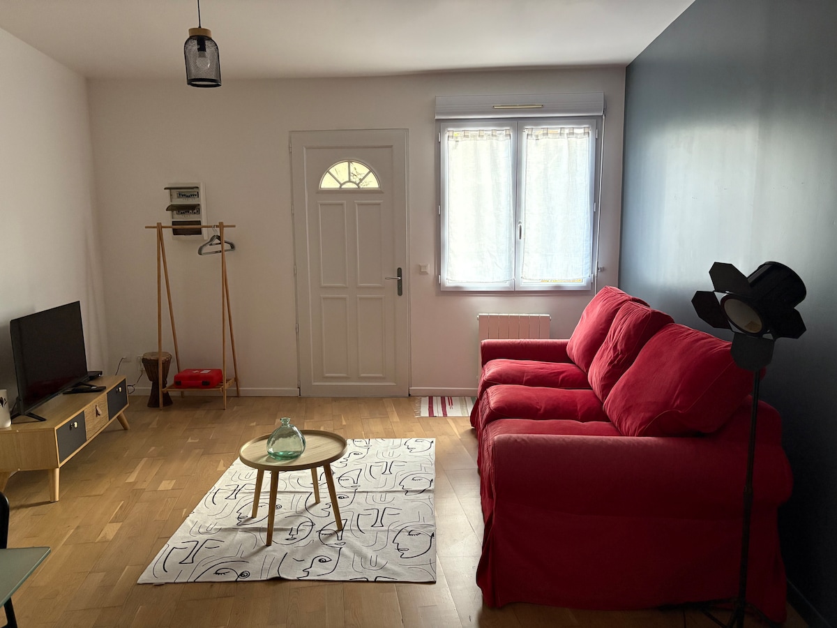 Simplifiez-vous la vie dans ce logement paisible et central. F2 à Villenoy, rénové en 2021 pour 2 ou 4 personnes, en rez-de-chaussée À 5 min de la gare à pieds, à 10 min du centre ville de Meaux et de la cathédrale. À 20 min en bus de Disney et du centre commercial Val d'Europe ( gare routière à 5 min à pieds, ligne 19 ) À 25 min de Paris en train, ligne P, et 30 min en voiture de l'aéroport Roissy Proche des commerces. WiFi en fibre