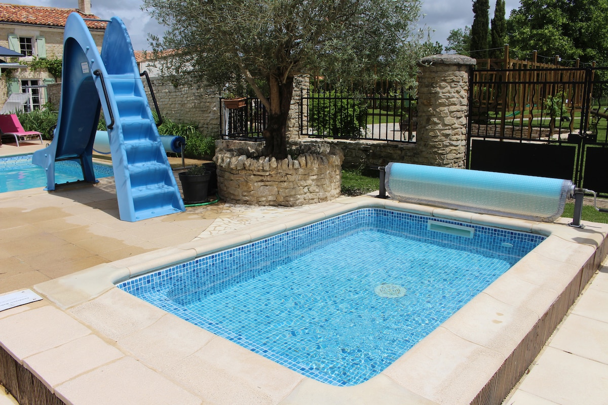 В семье в течение восьми поколений этот бывший фермерский дом,расположенный в центре Сайнтонге, сохранил свою аутентичность и очарование. Вы остановитесь в бывшей конюшне моей недавно отреставрированной бабушки. Любители природы и спокойствия, вы будете жить в нашем фермерском доме с кошками, курами и кроликами. Имеются игры, игрушки, книги. Помимо сада, есть небольшой лес с скамейками и гамаком. Туристические брошюры. Плата за уборку не взимается, но оставьте жилье чистым. Спасибо