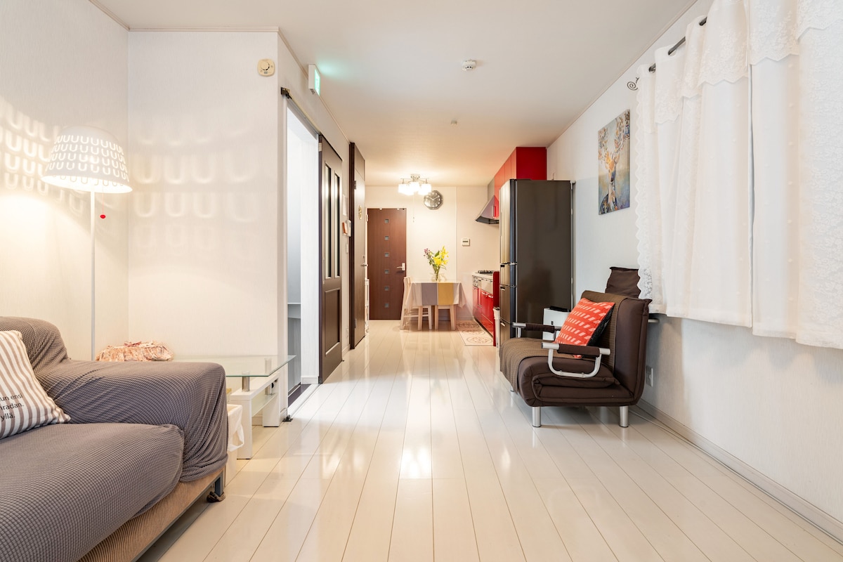 3 туалета, 2 ванные комнаты, одна квартира! (Максимум 9 человек) + бесплатная парковка + бесплатная доставка багажа на поезд JR (станция Кёбаси) из аэропорта!
