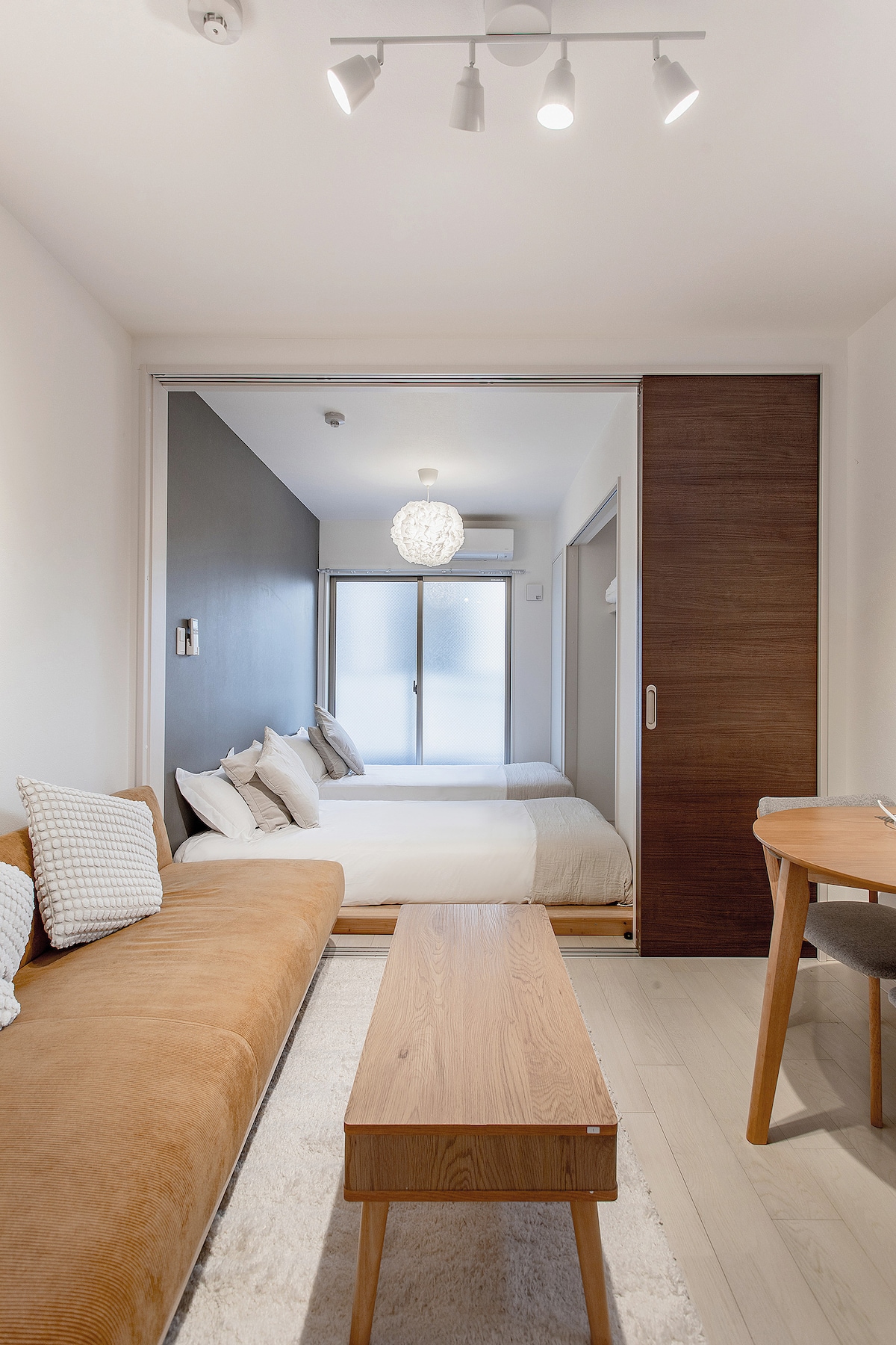 Step into a fully renovated 100-year-old townhouse that blends traditional Japanese aesthetics with modern comfort. Local artwork throughout the residence brings together old-world Japanese craftsmanship with a touch of Western style. Enter through a long corridor inspired by Kyoto architecture and enjoy the serenity of a private garden before reaching your residence.