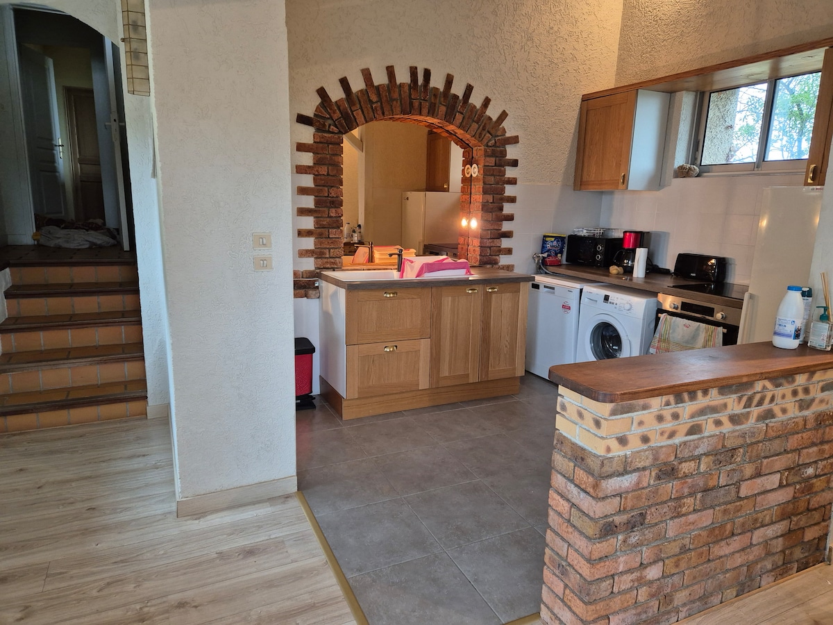 Расслабьтесь в этом доме в центре органического виноградника площадью 60 га с террасой и мягким звуком фонтана. Вы буквально окажетесь среди виноградников с потрясающим видом на виноградник. Двухэтажный дуплекс с видом на фонтан с родниковой водой с видом на римский противоположность Энсеруне, в 5 минутах от канала Миди. Новый дом, отремонтированный в 2024 году, полностью оборудованный, кондиционер, летняя кухня. Предоставляются качественные материалы, новое постельное белье, постельное белье и полотенца. Зарядная станция Elec 22 кВт