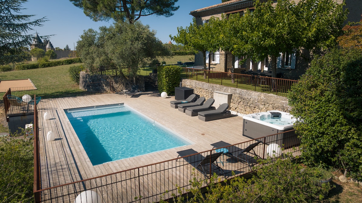 Relax in this quiet, elegant accommodation in the Narbonnaise countryside, a stone's throw from the Clape massif and 15 minutes from the sea and Grands buffets. Come and discover a lush 2000 m2 enclosed nature and enjoy with family, friends or as a couple a private 5-seater spa and a large swimming pool. At aperitif time you can relax with a game of pétanque while the children play the trampoline. We will welcome you for a vacation or a weekend all year round.