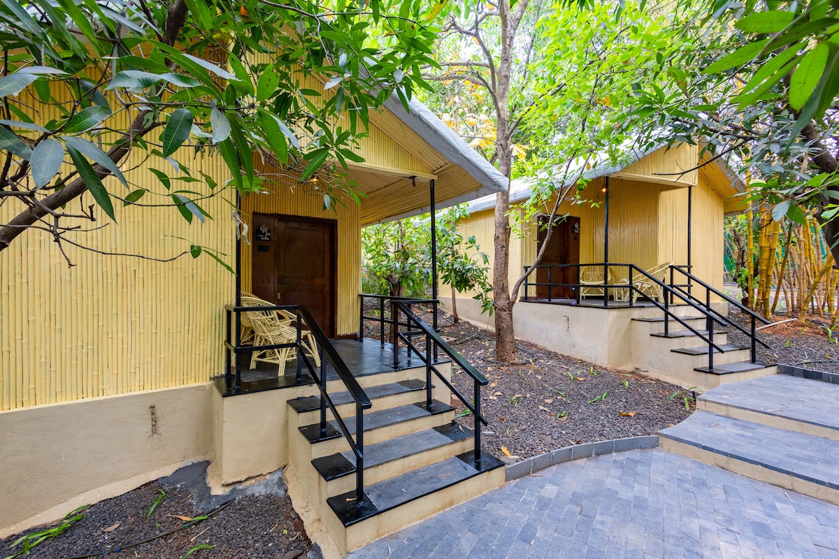 Коттедж Garden Cottage находится в спокойной, зеленой и комфортабельной обстановке, окруженной деревьями и газонами на нашей ферме. Есть 2 варианта проживания: в 1 коттедже есть двуспальная кровать и две односпальные кровати, мини-кухня, обеденная зона, гостиная зона и рабочее место. Во втором коттедже есть 2 люкса с двуспальной кроватью и зоной отдыха с 2 дополнительными односпальными кроватями в каждом. Плата за проживание до 2 взрослых составляет 4000 рупий за ночь, включая завтрак, а за любых дополнительных гостей - 1500 рупий с человека за ночь, включая завтрак.