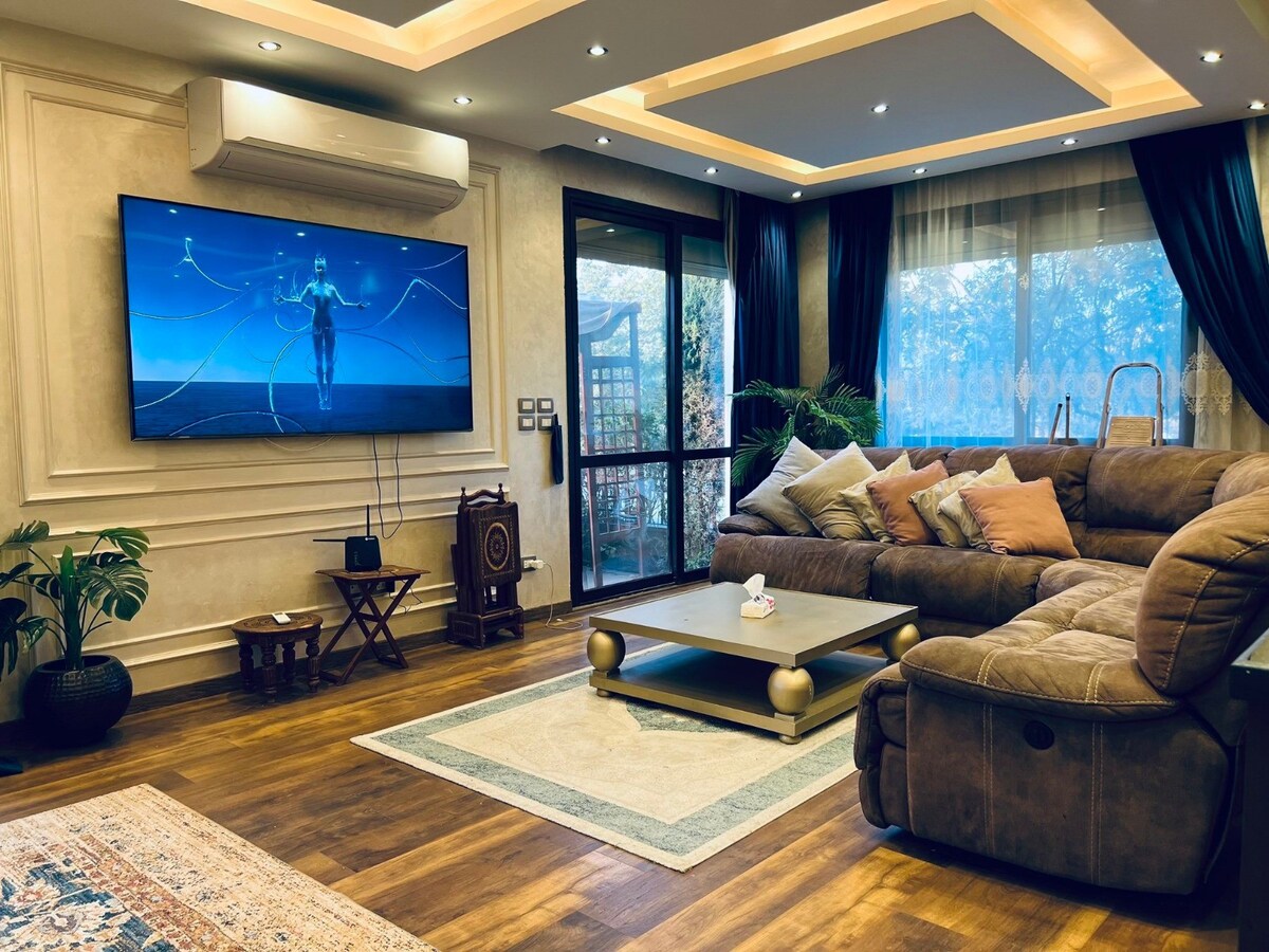 Ryan's Inn: уютный семейный дом в Новом Каире с видом на сад Добро пожаловать в Ryan's Inn, очаровательный семейный дом, расположенный на втором этаже в одном из самых безопасных районов Нового Каира. Это тихое убежище находится всего в 20 минутах езды от международного аэропорта Каира и всего в 5 минутах от оживленного торгового центра Cairo Festival City Mall, предлагающего идеальное сочетание комфорта, удобства и безопасности. Квартира расположена на втором этаже, доступна только по лестнице. Обратите внимание, что лифта нет.