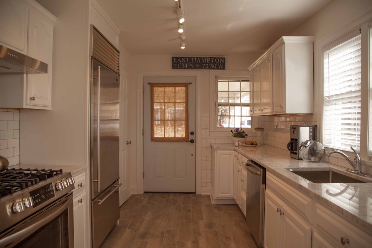 Полностью отремонтированный дом с 3 спальнями на действующей ферме с камином и пианино. Кухня Lux оснащена приборами из нержавеющей стали, холодильником Sub-zero и мраморными столешницами. Частный огороженный задний двор с барбекю. На ферме есть козы, свиньи, куры, пчелиные ульи, утки, а также кафе и пекарня. Рядом с деревней Хантингтон, велосипедными тропами, природными прогулками, ресторанами, парками и пляжем. Быстрый Wi-Fi, доступ к прачечной и проживание с домашними животными. Новые кровати и детский рояль. В спальнях есть затемняющие шторы.