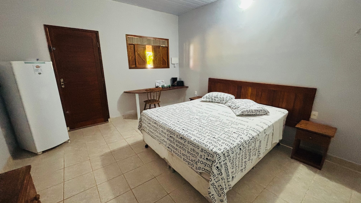 Casa bem aconchegante. Sala: Com ar condicionado, TV de 70'', sofá cama e rede. Cozinha: completa no ambiente. Quarto 1: possui ar condicionado e cama king size na suíte, além de 2 guarda-roupas e mesa de trabalho, e outra TV de 60 polegadas. Ante quarto: Também possui um outro quarto ligado ao primeiro com outra cama de casal. Ao todo a casa disponibiliza de 1 banheiro e 1 lavabo. Tem ainda 1 vaga de garagem, piscina, churrasqueira e área externa com chuveiro.