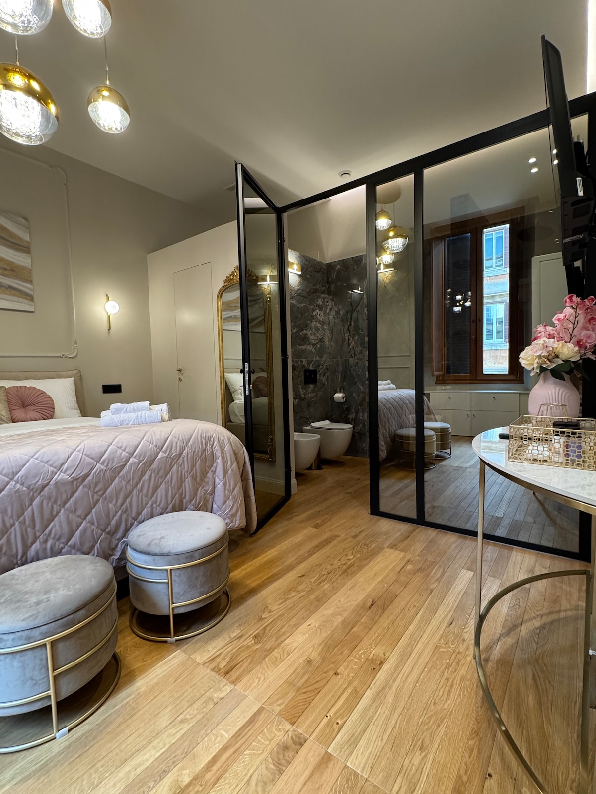 One step away from Termini station, RossoCardinale is an elegant, spacious, quiet and bright apartment. Recently renovated, RossoCardinale is equipped with 2 bedrooms (one double and one convertible 1 double / 2 single), 2 bathrooms, a kitchen with all accessories, a dining room and a living room. The apartment is in front of Termini station and therefore central and well connected by public transport.