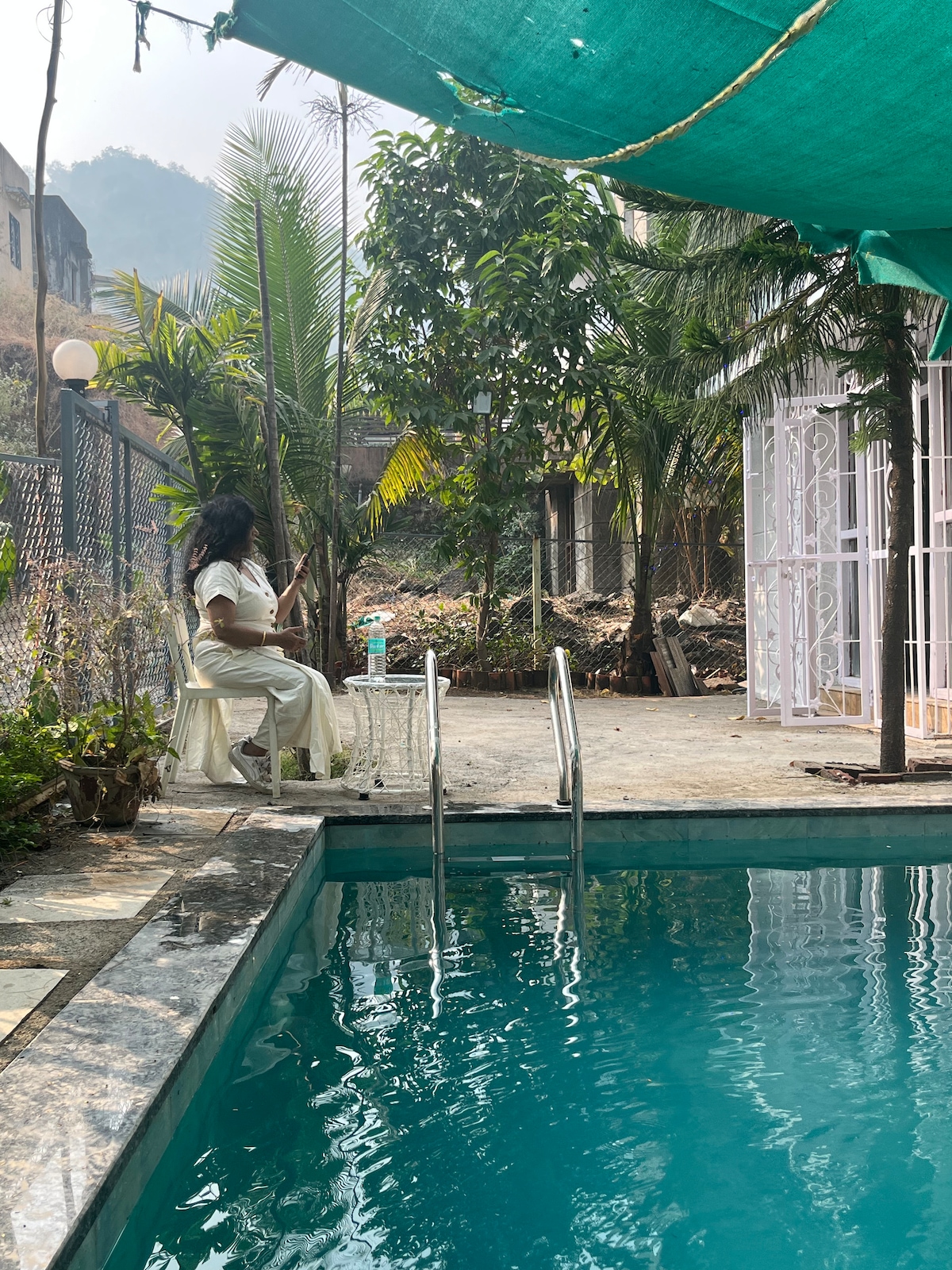 Welcome to a one-of-a-kind 3BHK private villa crafted from two premium shipping containers, designed for guests who want privacy, design, and a resort-style experience inside Mumbai. Surrounded by greenery, this villa features a private swimming pool, lush garden, spacious living area, and a scenic terrace, making it perfect for families, couples, and small groups seeking a peaceful yet stylish escape near Film City.