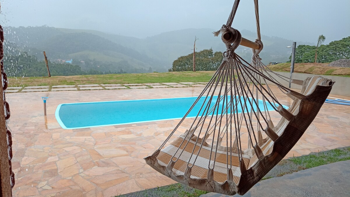 Casa para 10 pessoas com mais 1 sofá cama para 2 pessoas, cozinha equipada dentro de um sítio de 10 alqueires, privativa, podendo usar piscina, banheira, campo de futebol, lago para pesca, trilhas, churrasqueira portátil, rede, pomar, horta, tudo isso com uma vista cinematográfica e privativa, com muita paz e silêncio.