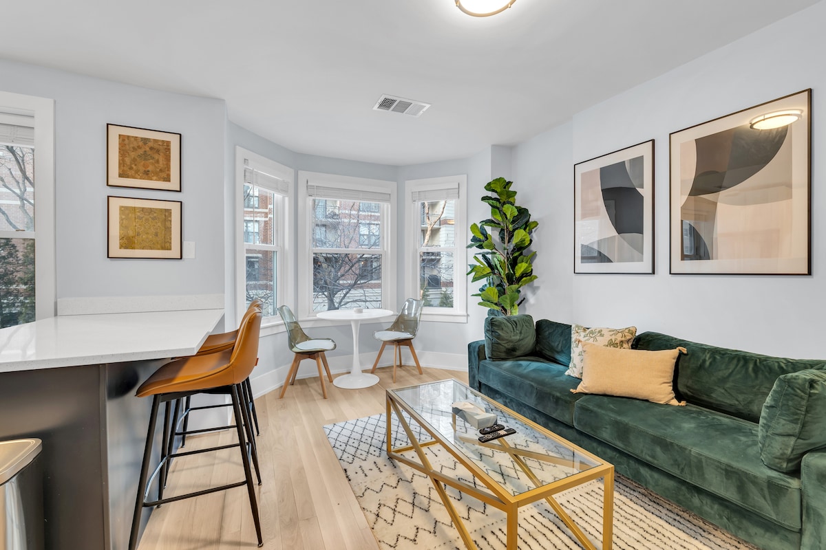 Остановитесь в центре старого города Чикаго! Эта светлая, прохладная и удобная одна спальня, одна ванная комната оборудована современной мебелью середины века, украшена кирпичной кладкой, новой техникой и имеет истинную атмосферу города! Здесь с комфортом могут разместиться двое (3-й человек может спать на диване), всего в 2 кварталах от Линкольн-парка и в 3 кварталах от знаменитых баров Second City и звездного Старого города. Не говоря уже о 5 минутах езды на Uber до северного района Ривер (в центре Чикаго)!