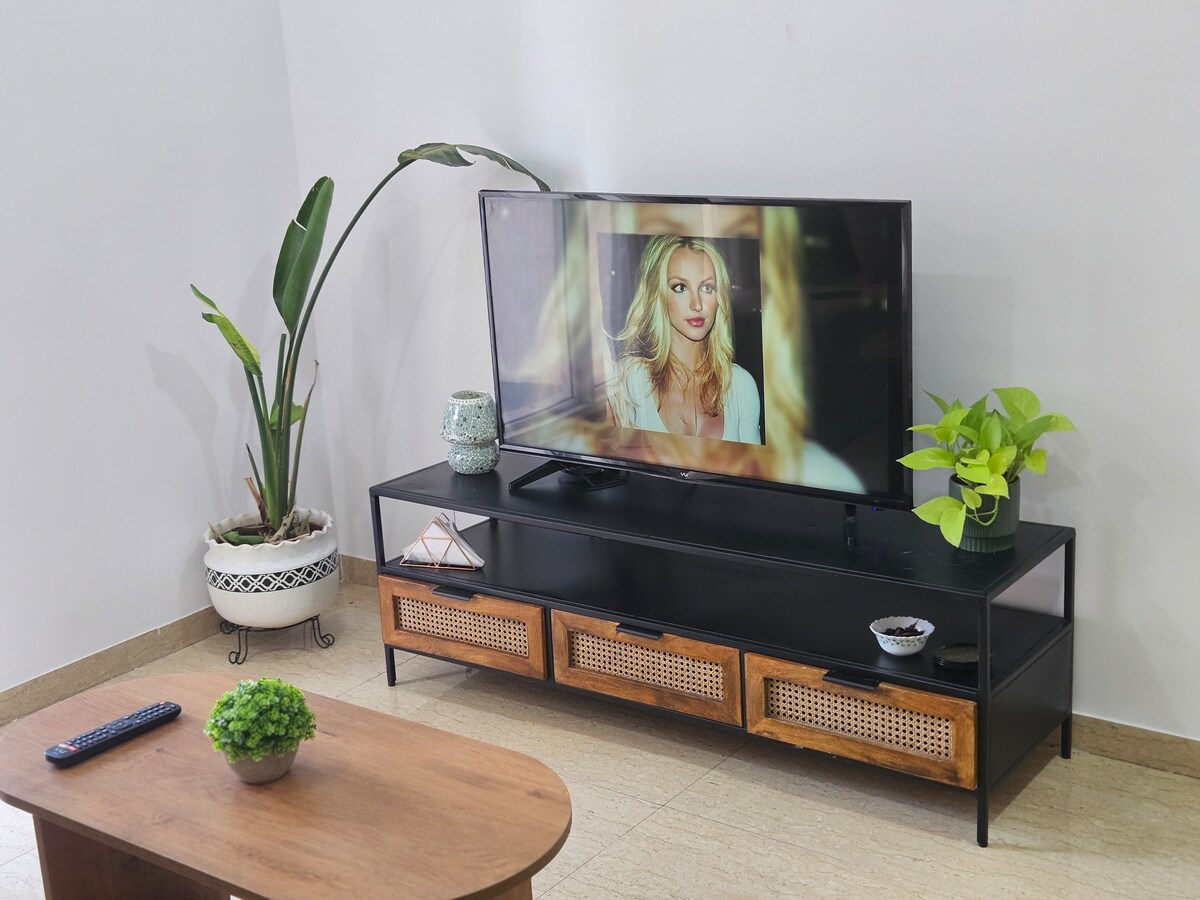 Wifi Enabled - Well furnished, spacious 600 Sq. ft 1 BHK flat on 20th floor around a golf course. This flat faces the Grand MCA Stadium, and Western Ghats - a view from each of the rooms. The well-appointed flat has all amenities including a well-equipped kitchen with basic needs like tea/coffee, spices. 9 hole, par 27 Golf course within the property is accessible to guests on pay and play basis. Non Golfers can enjoy the walk around the course and the riverside promenade.