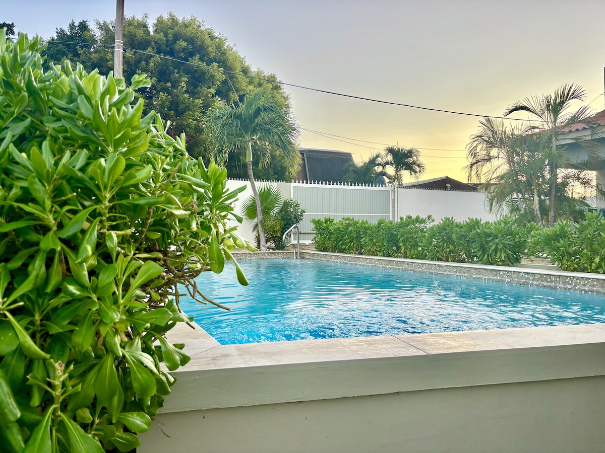 Bon Bini at Casita Apapacho! Ваше современное пребывание в центре Яна Тиля Всего в 5 минутах от пляжа, ресторанов и пляжных клубов. До пляжа Мамбо 10 минут, до Виллемстада 15 минут. Любите природу? Spanish Water (10 минут), St. Йорисбай (20 минут) и Вестпунт (60 минут). Вы остановитесь в оазисе спокойствия: закрытом курорте всего с 8 бунгало и общим бассейном. Включает 15 кВт·ч электроэнергии и 0,5 м³ воды в день. Короче говоря, идеально подходит для пар или небольших семей, которые ценят покой, комфорт и расположение.