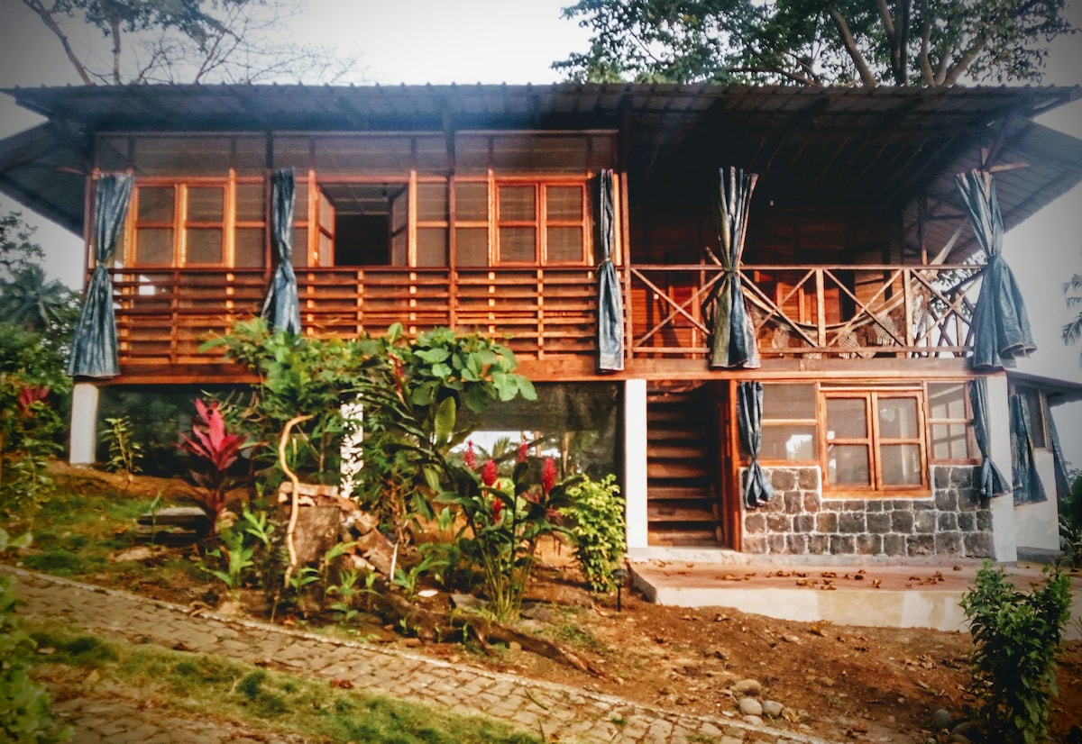 Типичный дом (экобунгало), вставленный в Ecolodge, где можно увидеть нерест морских черепах, на диком пляже с черным песком. Будьте счастливы, приходите и посмотрите на наш рай. Питание и бар с органическими продуктами.
