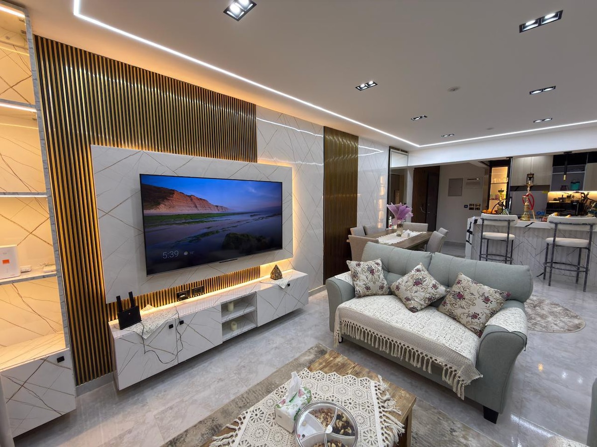 Ваше идеальное пребывание в Новом Каире! Просыпайтесь под спокойные звуки канала в этой современной уютной студии. Насладитесь утренним кофе у окна, посмотрите любимые шоу на 50-дюймовом телевизоре или приготовьте ужин на полностью оборудованной кухне. Быстрый Wi-Fi, удобная мебель и рейтинг 5⭐. Это место идеально подходит для одиноких путешественников, пар или небольших семей, которые ищут спокойствие и стиль в центре Нового Каира.