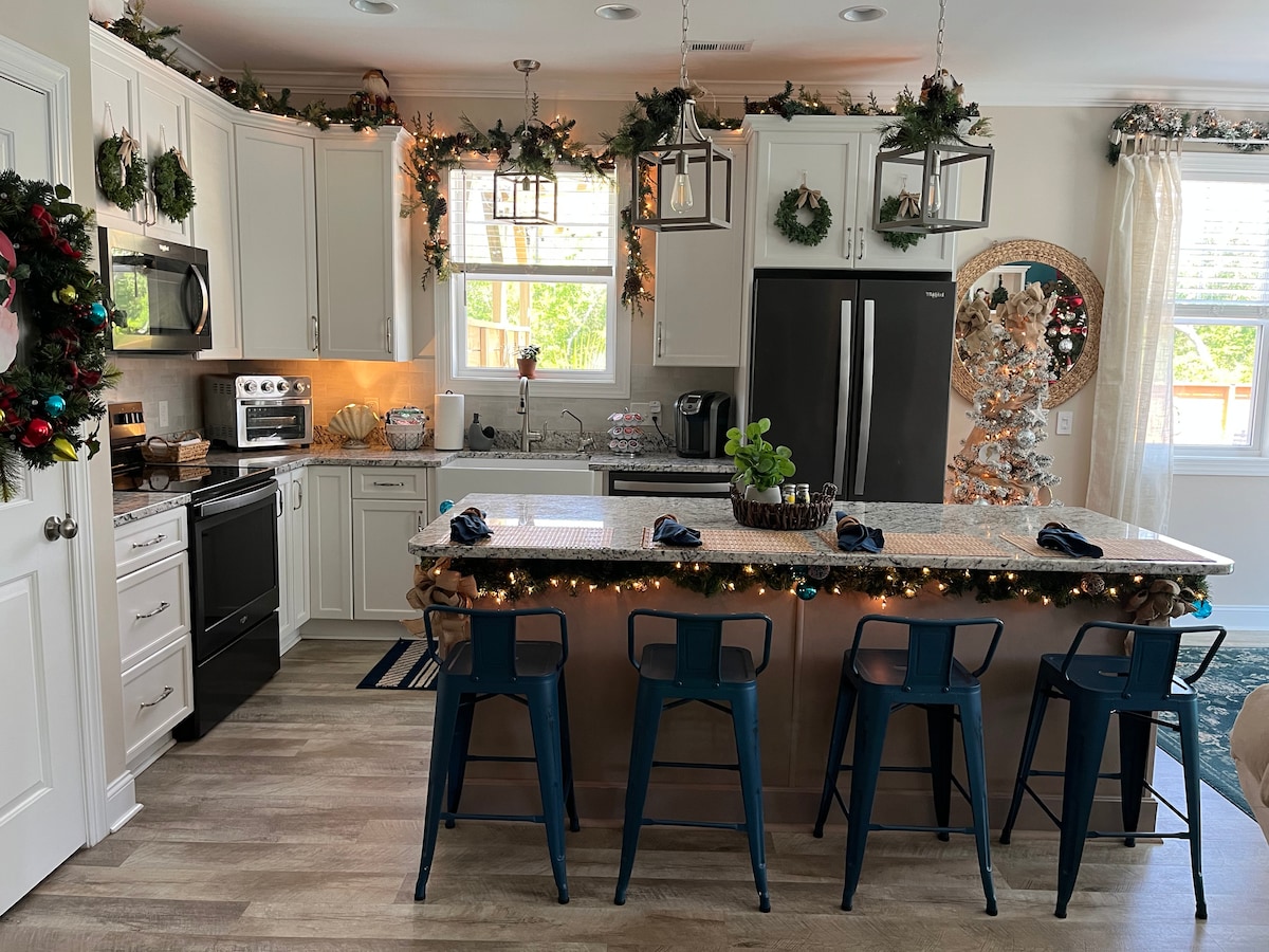 Добро пожаловать в ваше очаровательное жилье, где можно остановиться с собакой, в красивом прибрежном городе Уилмингтон, штат Северная Каролина. Этот уютный дом для отдыха расположен в тихом районе и предлагает комфортный и расслабляющий отдых для вас и ваших пушистых компаньонов. • 2 спальни 2 ванные 2 кровати размера King size 1 диван-кровать 1 двухъярусная кровать с двумя односпальными кроватями Полностью огороженный задний двор Пропановый гриль. 10 минут до Райтсвилл-Бич. Woof ** (25 долларов за проживание) Комната для лодки и трейлера с улицы!