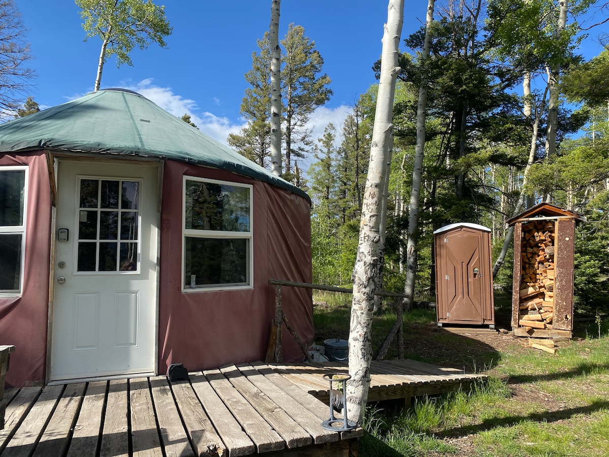 ПОЖАЛУЙСТА, ознакомьтесь со всей информацией о юрте перед бронированием. Из очаровательного леса открывается потрясающий вид на извилистые лесные тропы для пеших прогулок и катания на горных велосипедах. Это 0,7 мили пешком (или на велосипеде) до Latir Yurt (нет вождения). Это (высококлассный) КЕМПИНГ, а не гостиничный номер. Деревянная печь обеспечивает тепло, нет электричества, водопровода или комнаты/горничной. Мы предоставляем подобранные простыни, наволочки и наволочки. Принесите спальный мешок или одеяло для холодной температуры.
