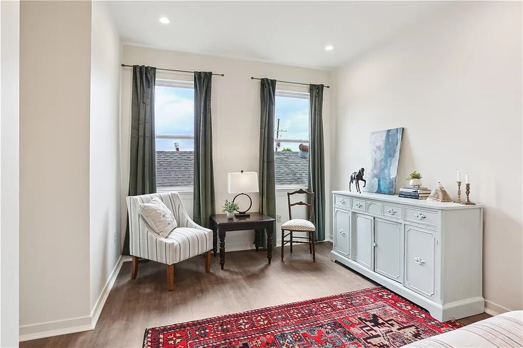 Юридически лицензированное жилье для отпуска имеет 3 большие спальни, 2 полные ванные комнаты, 1 туалет, столовую и кухню. Большой балкон на третьем этаже с видом на сад. В этом жилье есть все удобства, которые вы найдете в своем собственном доме, включая стиральную машину, сушилку, гладильную доску и утюг. Троллейбус находится в одном квартале, а улица Magazine Street — в трех кварталах. Много места для отдыха и посещения с семьей и друзьями, большой остров на кухне с диваном и стульями.