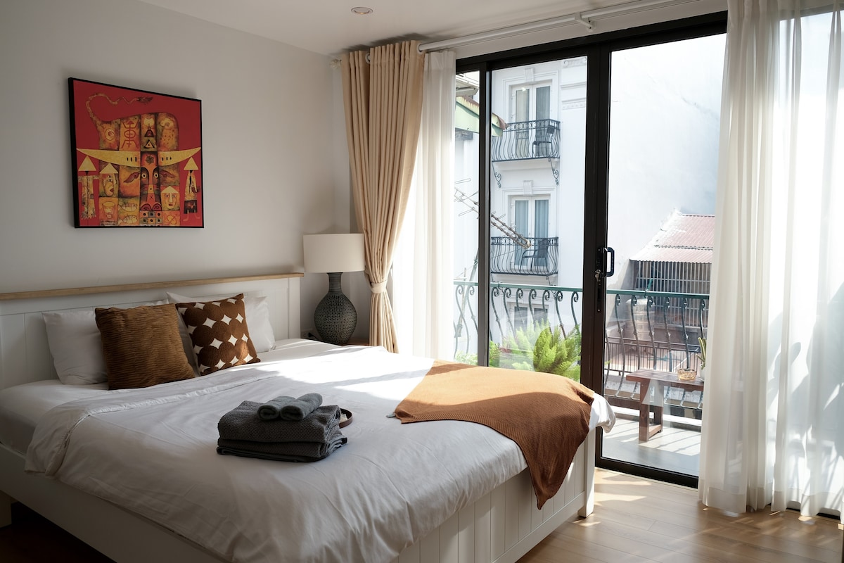 Наслаждайтесь лучшим, что может предложить Ханой, в нашей очаровательной квартире, расположенной в историческом здании на окраине Старого квартала, всего в нескольких минутах ходьбы от ОЗЕРА ХОАН КЬЕМ, ПИВНОЙ УЛИЦЫ и ОПЕРНОГО ТЕАТРА. Звукоизолированные окна, оживленный балкон, 50-дюймовый телевизор (с Netflix), хорошо оборудованная и просторная ванная комната - вот лишь некоторые из основных особенностей квартиры. Стиральная машина/сушилка (бесплатно), рабочий уголок. Свяжитесь с нами в любое время, если у вас возникнут вопросы. 😊